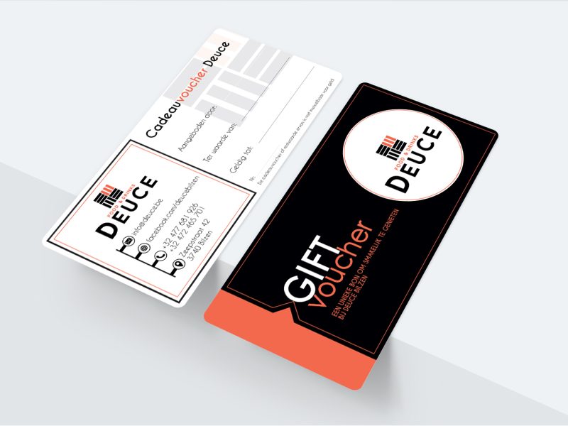 Ontdek het betoverende cadeaubon ontworpen door Atelier Smits voor Restaurant DEUCE. Ons design vangt de heerlijke belofte van culinaire genoegens en buitengewone diners die DEUCE te bieden heeft, met elk detail dat de smaakvolle ervaring en gastvrijheid weerspiegelt. Laat ons cadeaubon ontwerp je uitnodigen om de wereld van verrukkelijke smaken en onvergetelijke eetervaringen bij Restaurant DEUCE te verkennen.